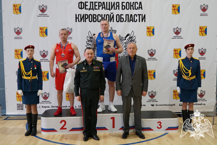 Медали и памятные подарки боксерам вручили начальник Управления Росгвардии по Кировской области генерал-майор полиции Дмитрий Пушкин и командир соединения Линар Нигматзянов. Дмитрий Пушкин поблагодарил участников, отметив, что оба проявили характер.