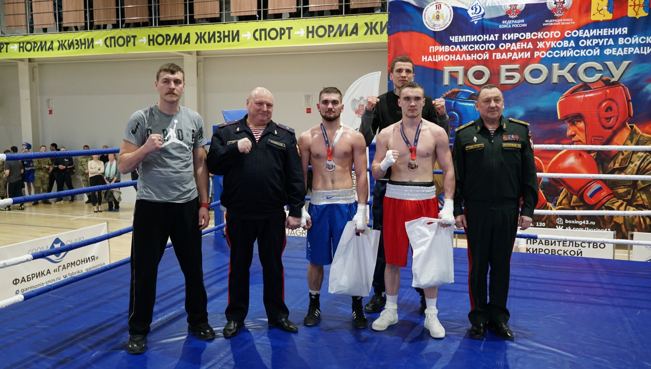 Медали и памятные подарки боксерам вручили начальник Управления Росгвардии по Кировской области генерал-майор полиции Дмитрий Пушкин и командир соединения генерал-майор Линар Нигматзянов. Дмитрий Пушкин обратился к спортсменам: «Здесь нет победителей и побежденных, просто одному сегодня повезло больше. Вы оба показали характер, показали хороший бой, спасибо вам за это!»